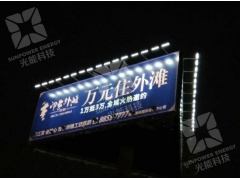 太陽能板白天吸收太陽光,通過控制器將光能轉換為電能存儲在蓄電池內,晚間蓄電池將電能釋放給LED燈具來實現照明。福建光能科技有限公司LED太陽能廣告牌產品優點: 1、使用安全:觸電火災從此無憂。 2、壽命長、易維護:長期無須更換燈管,開關光控+ 時間控制。 3、使用方便靈活:燈箱易于搬遷。 4、安裝方便:無需挖溝布線,節省施工費用。 5、節省開支:無須電力增容,免去電力部門公關。 6、能源零成本:取之不盡,用之不竭。 7、綠色環保:可再生能源,不會威脅人類和破壞環境。8.LED燈采用cree芯片,高壽命,長達5萬小時。透鏡技術,分布式發光,高顯色性,高還原性,畫面清晰,明亮。外形美觀,本身是由鋁合金一體壓鑄而成,充分解決了大功率LED散熱問題。 9.電池板壽命更可達到25年以上.